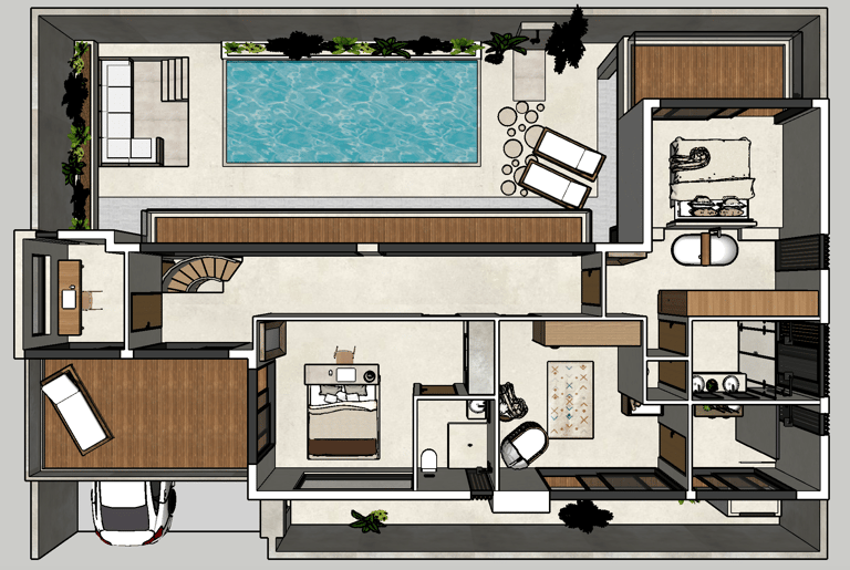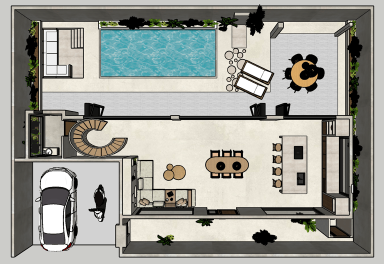 Dit gezin leefde voornamelijk buiten en ze wilden een fijn binnen-buiten gevoel creëren. Dit hebben we gerealiseerd door te werken met grote ramen en veel natuurlijk licht.