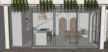 Dit huis heeft een geweldig binnen-buiten gevoel, er zijn veel ramen en twee grote schuifsystemen die naar de tuin leiden.