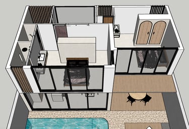 We kregen de kans om een plattegrond te maken voor deze prachtige woning met drie slaapkamers in Bali. We hebben een 2D plattegrond omgezet in een 3D plattegrond.